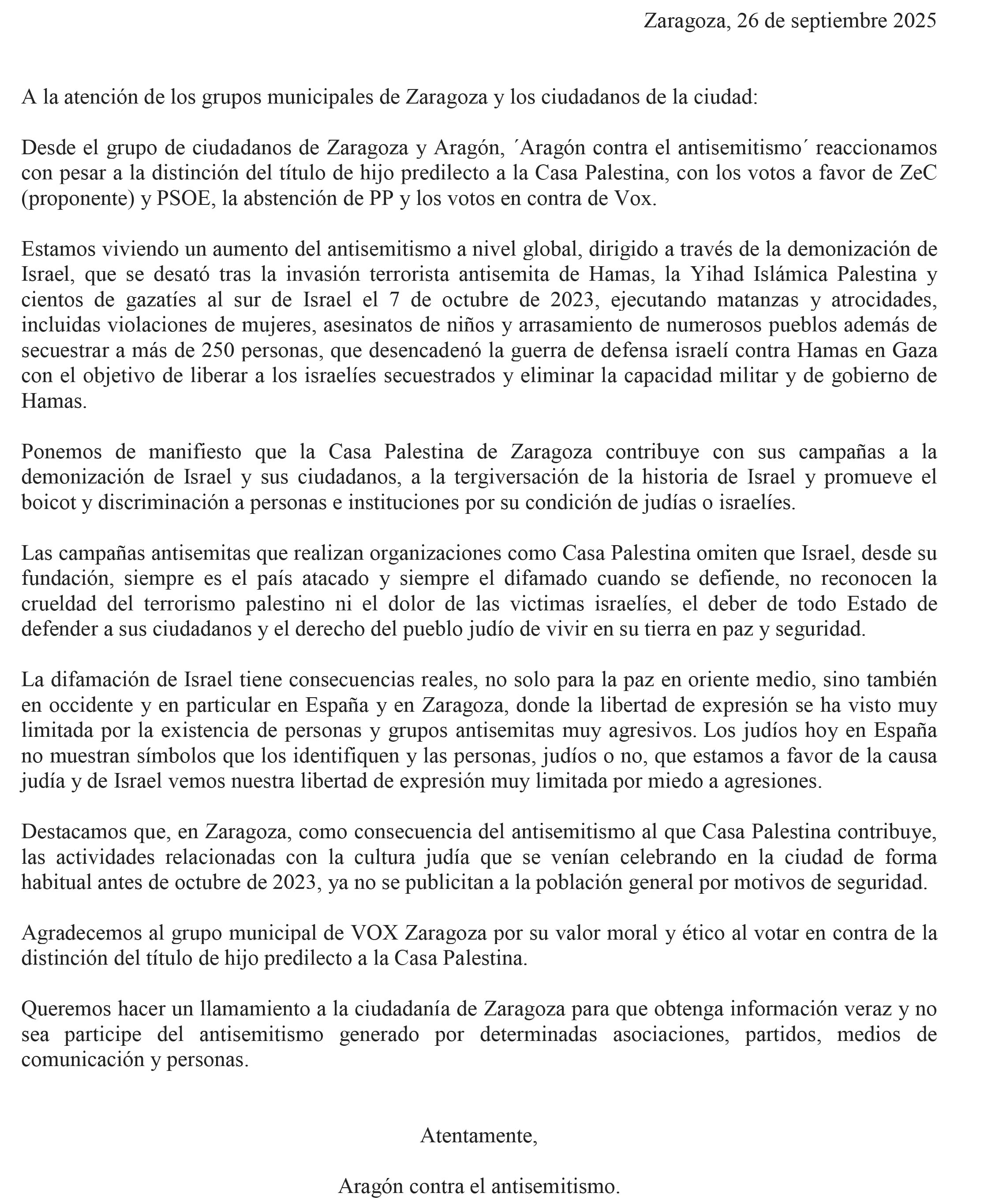 denuncia al Ayuntamiento de Zaragoza