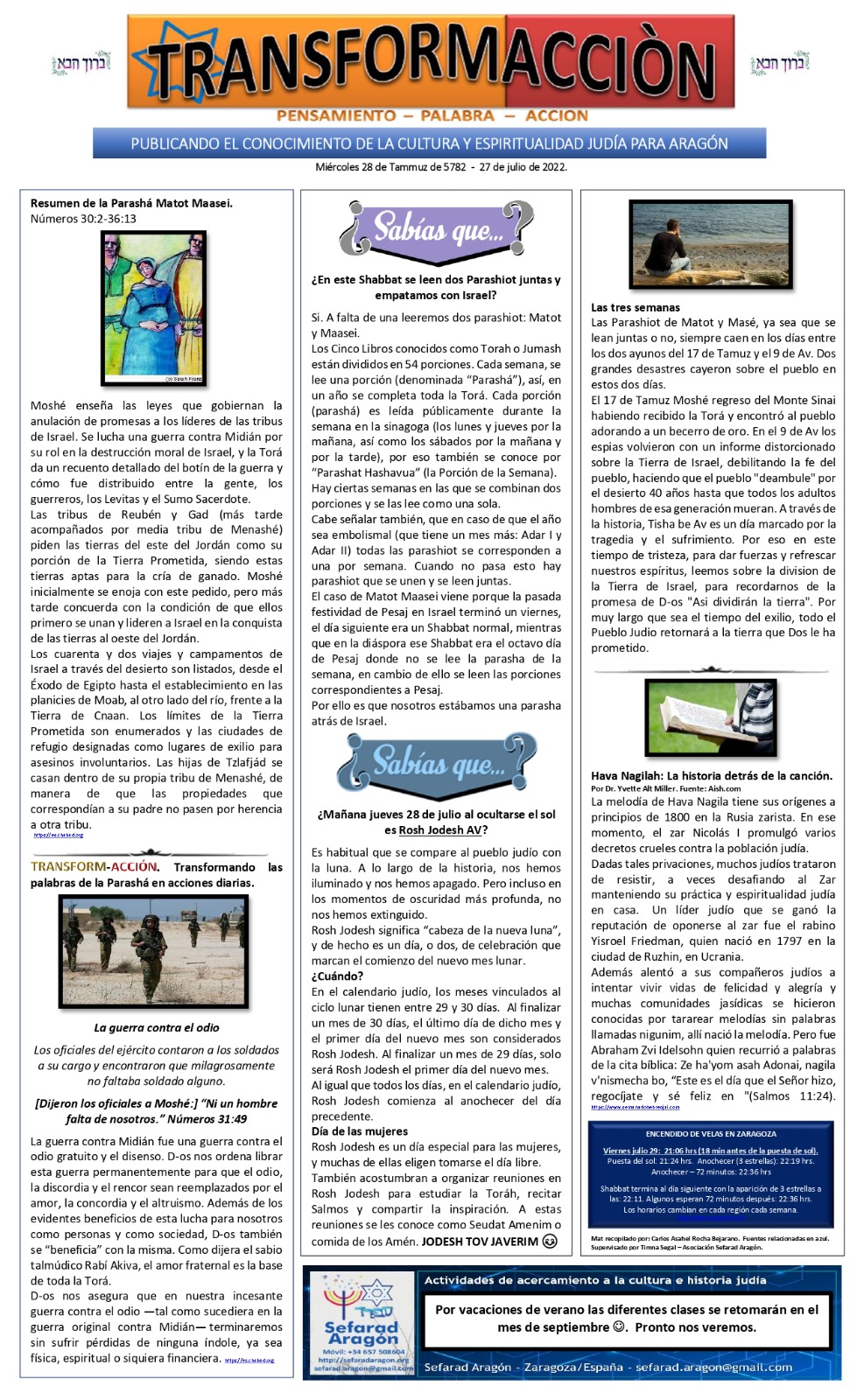 27 julio 2022 - 28 de Tamuz 5782 -
