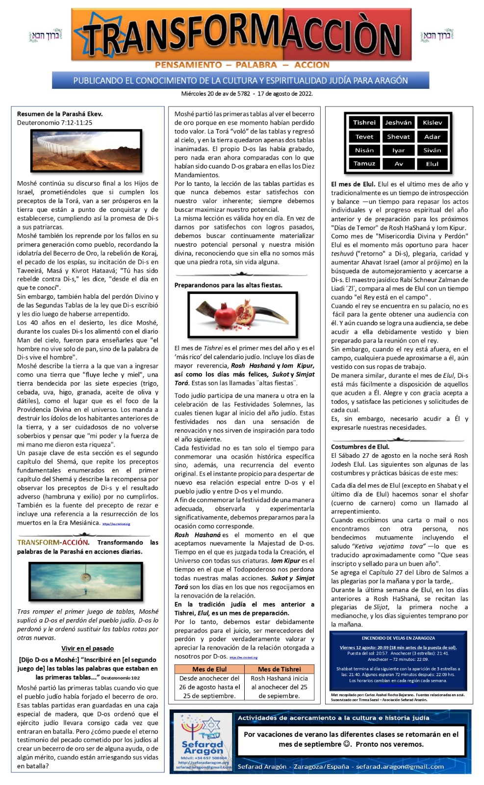 17 agosto 2022 - 20 de Av 5782 -