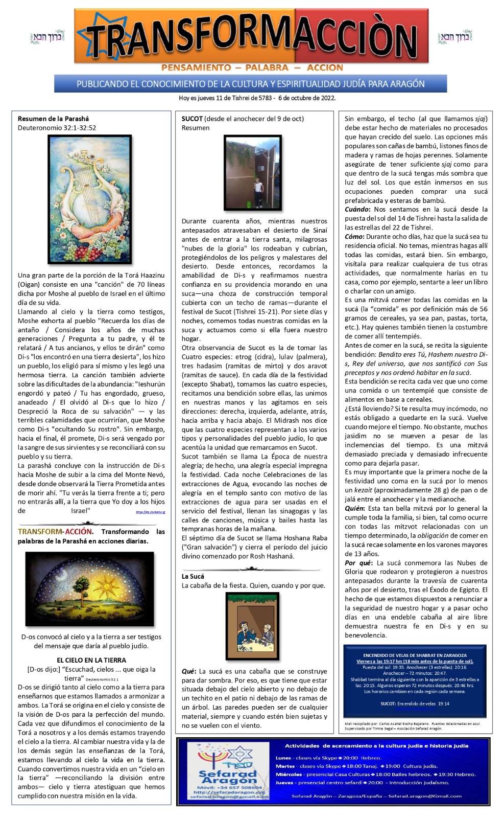 06 octubre 2022 - 11 de Tisrey 5783 -